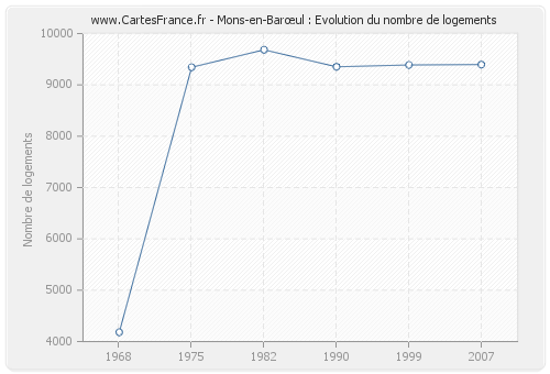 Historique du nombre de logements de Mons-en-Barœul de 1968 à 2007 :