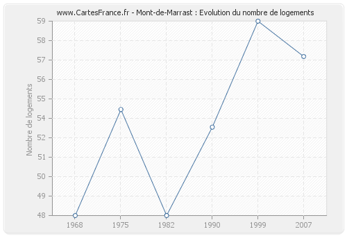 Le nombre de logements de Mont-de-Marrast était de 57 en 2007, 59 en 1999, 53 en 1990, 48 en 1982, 54 en 1975 et 48 en 1968.