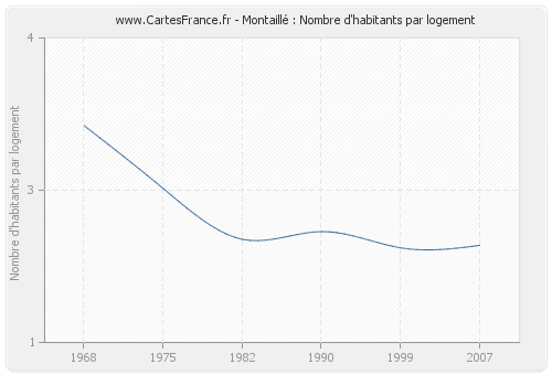 - Nombre d'habitants moyen par logement de Montaillé en 2007 : 1,96