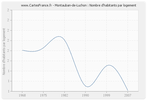 - Nombre d'habitants moyen par logement de Montauban-de-Luchon en 1982 : 1,70