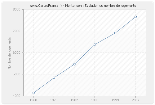 Historique du nombre de logements de Montbrison de 1968 à 2007 :