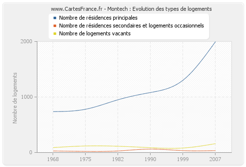 - Nombre de résidences principales de Montech en 2007 : 1 993