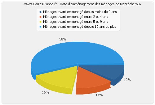 - Nombre de ménages de Montécheroux ayant emménagé depuis 10 ans ou plus : 141