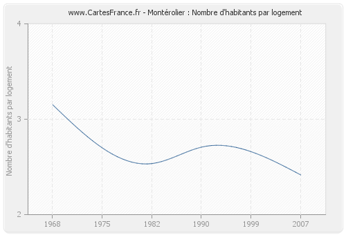 - Nombre d'habitants moyen par logement de Montérolier en 2007 : 2,42