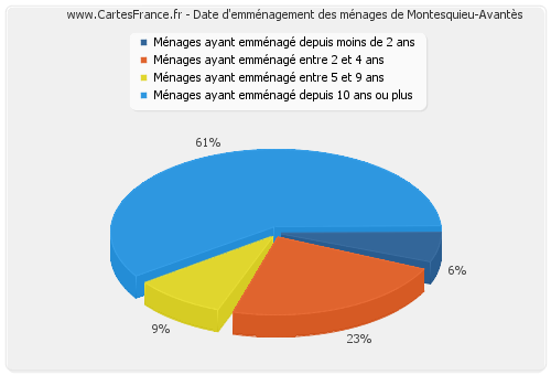 - Nombre de ménages de Montesquieu-Avantès ayant emménagé depuis moins de 2 ans : 6