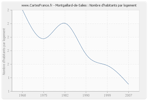 - Nombre d'habitants moyen par logement de Montgaillard-de-Salies en 2007 : 1,36