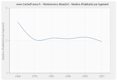 - Nombre d'habitants moyen par logement de Montmorency-Beaufort en 2007 : 1,97