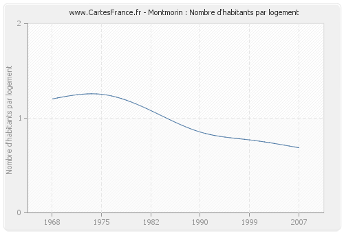 - Nombre d'habitants moyen par logement de Montmorin en 2007 : 0,69