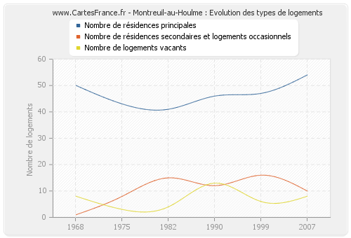 - Nombre de résidences principales de Montreuil-au-Houlme en 2007 : 54