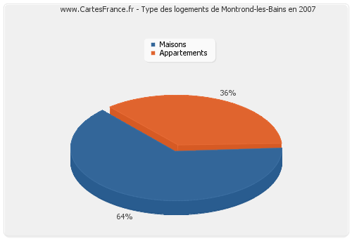 Les logements de Montrond-les-Bains étaient composées en 2007 de 1 423 maisons et 785 appartements.