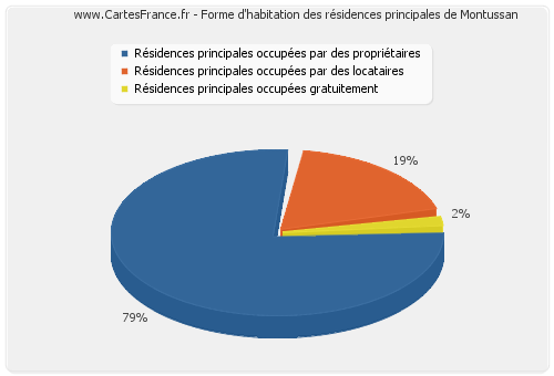 En 2007, 752 résidences principales de Montussan étaient occupées par des propriétaires.