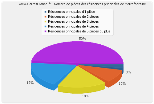 - Nombre de résidences principales de Mortefontaine de trois pièces : 61