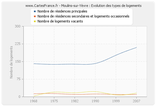 - Nombre de résidences principales de Moulins-sur-Yèvre en 2007 : 210