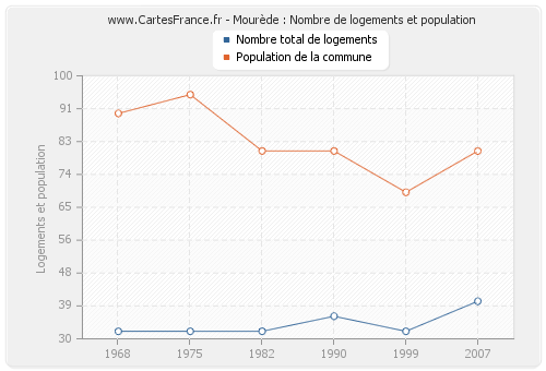 Historique du nombre de logements de Mourède de 1968 à 2007 :