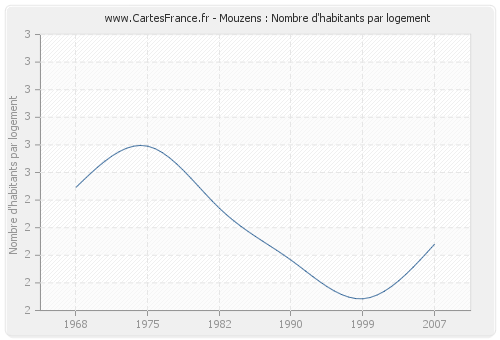 - Nombre d'habitants moyen par logement de Mouzens en 1968 : 2,45
