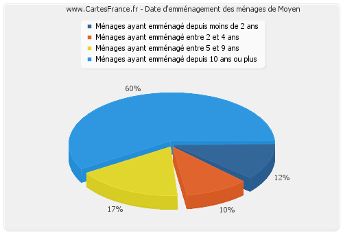 - Nombre de ménages de Moyen ayant emménagé depuis 10 ans ou plus : 121