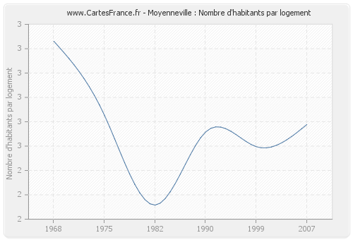 - Nombre d'habitants moyen par logement de Moyenneville en 2007 : 2,59