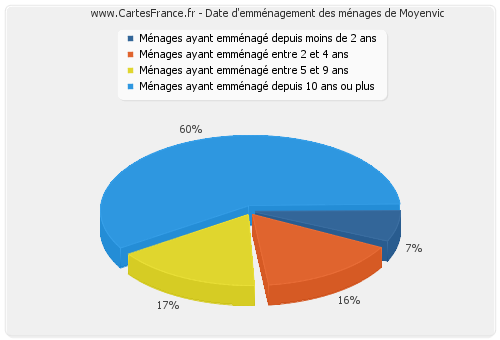 - Nombre de ménages de Moyenvic ayant emménagé depuis moins de 2 ans : 10