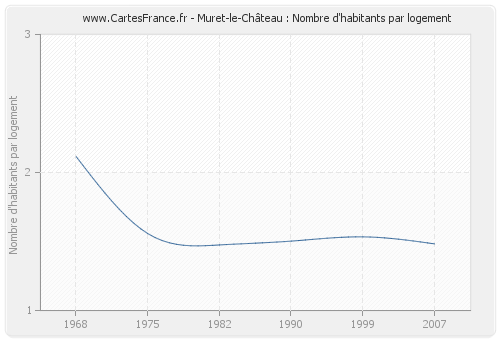 - Nombre d'habitants moyen par logement de Muret-le-Château en 2007 : 1,48