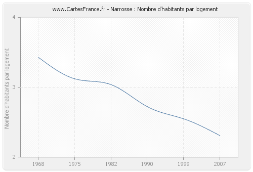 - Nombre d'habitants moyen par logement de Narrosse en 1968 : 3,43