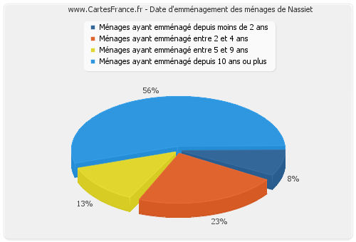 - Nombre de ménages de Nassiet ayant emménagé depuis 10 ans ou plus : 66