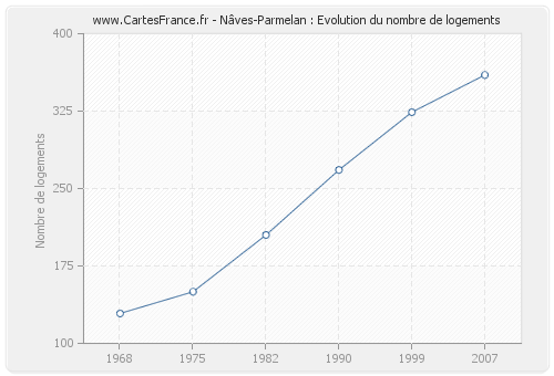 Historique du nombre de logements de Nâves-Parmelan de 1968 à 2007 :