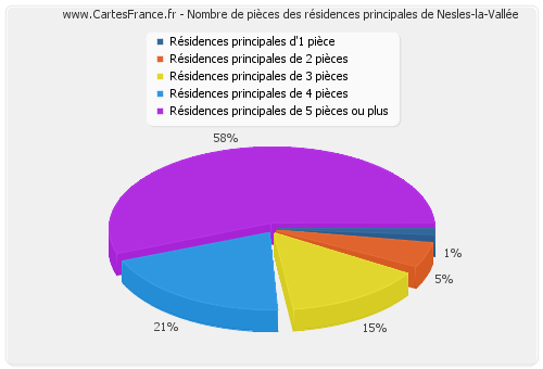 Nombre de pièces des résidences principales de Nesles-la-Vallée en 2007 :