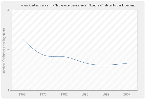 - Nombre d'habitants moyen par logement de Neuvy-sur-Barangeon en 2007 : 1,67