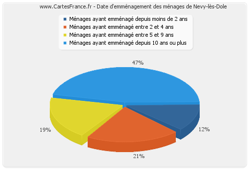- Nombre de ménages de Nevy-lès-Dole ayant emménagé depuis 10 ans ou plus : 46
