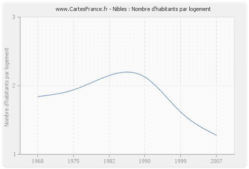- Nombre d'habitants moyen par logement de Nibles en 1968 : 1,84