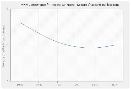 - Nombre d'habitants moyen par logement de Nogent-sur-Marne en 2007 : 2,00