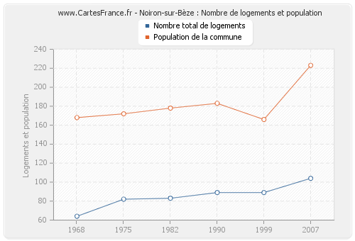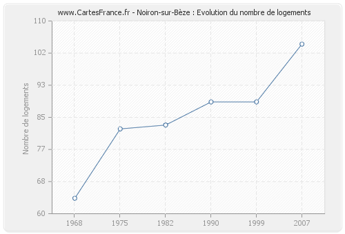 Historique du nombre de logements de Noiron-sur-Bèze de 1968 à 2007 :