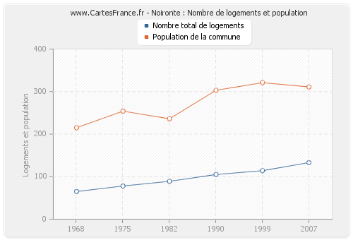 Historique du nombre de logements de Noironte de 1968 à 2007 :