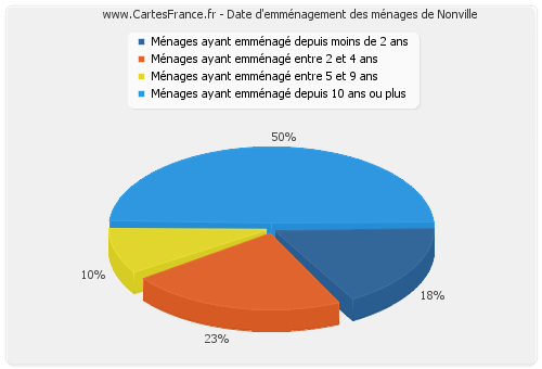 - Nombre de ménages de Nonville ayant emménagé depuis 10 ans ou plus : 31