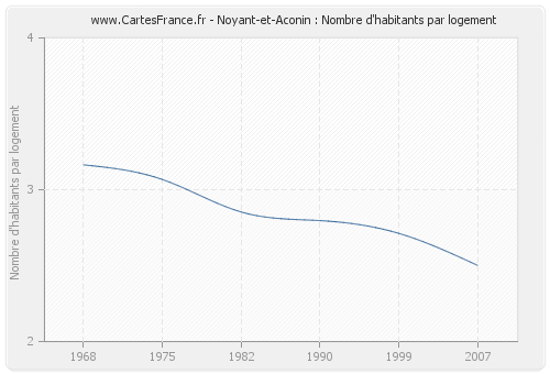 - Nombre d'habitants moyen par logement de Noyant-et-Aconin en 2007 : 2,50