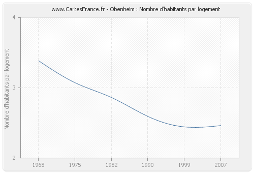 Le Village d'Obenheim avait en 2007 une moyenne de 2,46 habitants par logement.