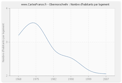 - Nombre d'habitants moyen par logement d'Obermorschwihr en 2007 : 2,06