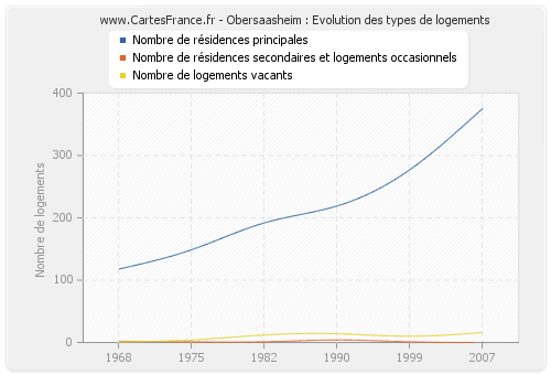 - Nombre de résidences principales d'Obersaasheim en 2007 : 375