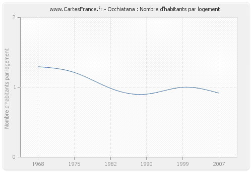 - Nombre d'habitants moyen par logement d'Occhiatana en 2007 : 0,92