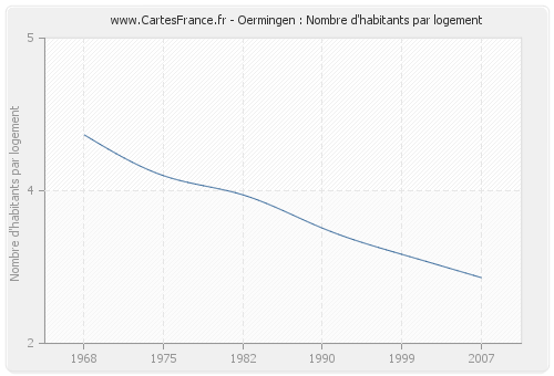 - Nombre d'habitants moyen par logement d'Oermingen en 2007 : 2,65