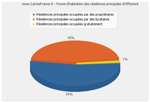 - Nombre de résidences principales d'Offemont en 1999 : 1 345