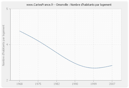 - Nombre d'habitants moyen par logement d'Omonville en 2007 : 2,63