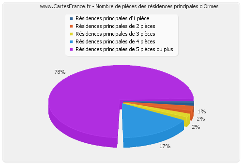 - Nombre de résidences principales d'Ormes de cinq pièces et plus : 132