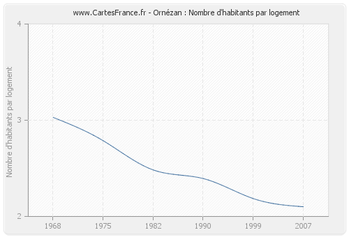- Nombre d'habitants moyen par logement d'Ornézan en 1968 : 3,03