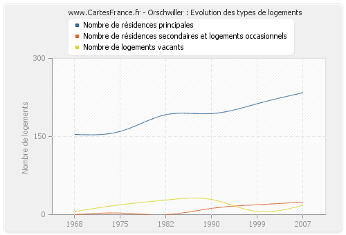 - Nombre de résidences principales d'Orschwiller en 2007 : 234