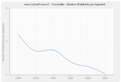 - Nombre d'habitants moyen par logement d'Orschwiller en 2007 : 2,03