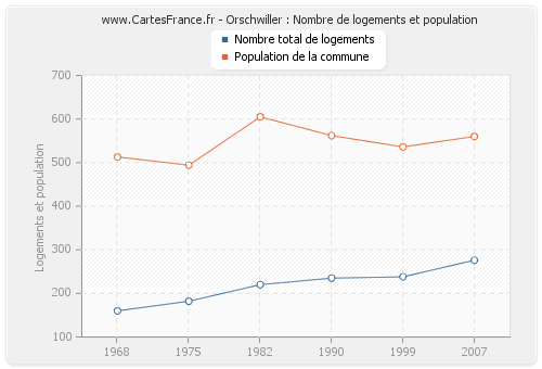 Historique du nombre de logements d'Orschwiller de 1968 à 2007 :