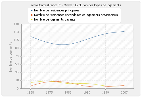 En 2007 les logements d'Orville étaient composés de 124 résidences principales, 7 résidences secondaires ou occasionnels ainsi que 6 logements vacants.