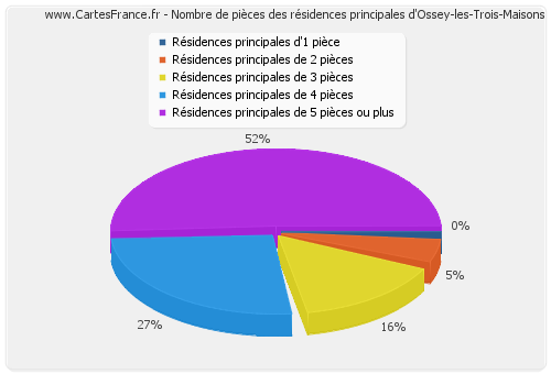 Nombre de pièces des résidences principales d'Ossey-les-Trois-Maisons en 2007 :