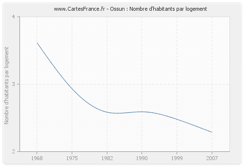 - Nombre d'habitants moyen par logement d'Ossun en 2007 : 2,29